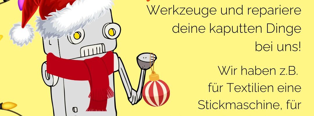 Wir haben Lötwerkzeug da, können kleine Plastikersatzteile im 3D-Drucker herstellen oder Löcher in Kleidung mit Näh- und Stickmaschine reparieren. Manchmal reicht es auch, einen Gegenstand zu säubern, damit er im neuen Glanz erstrahlt. Lasst uns gemeinsam werkeln, reparieren und Spaß haben.