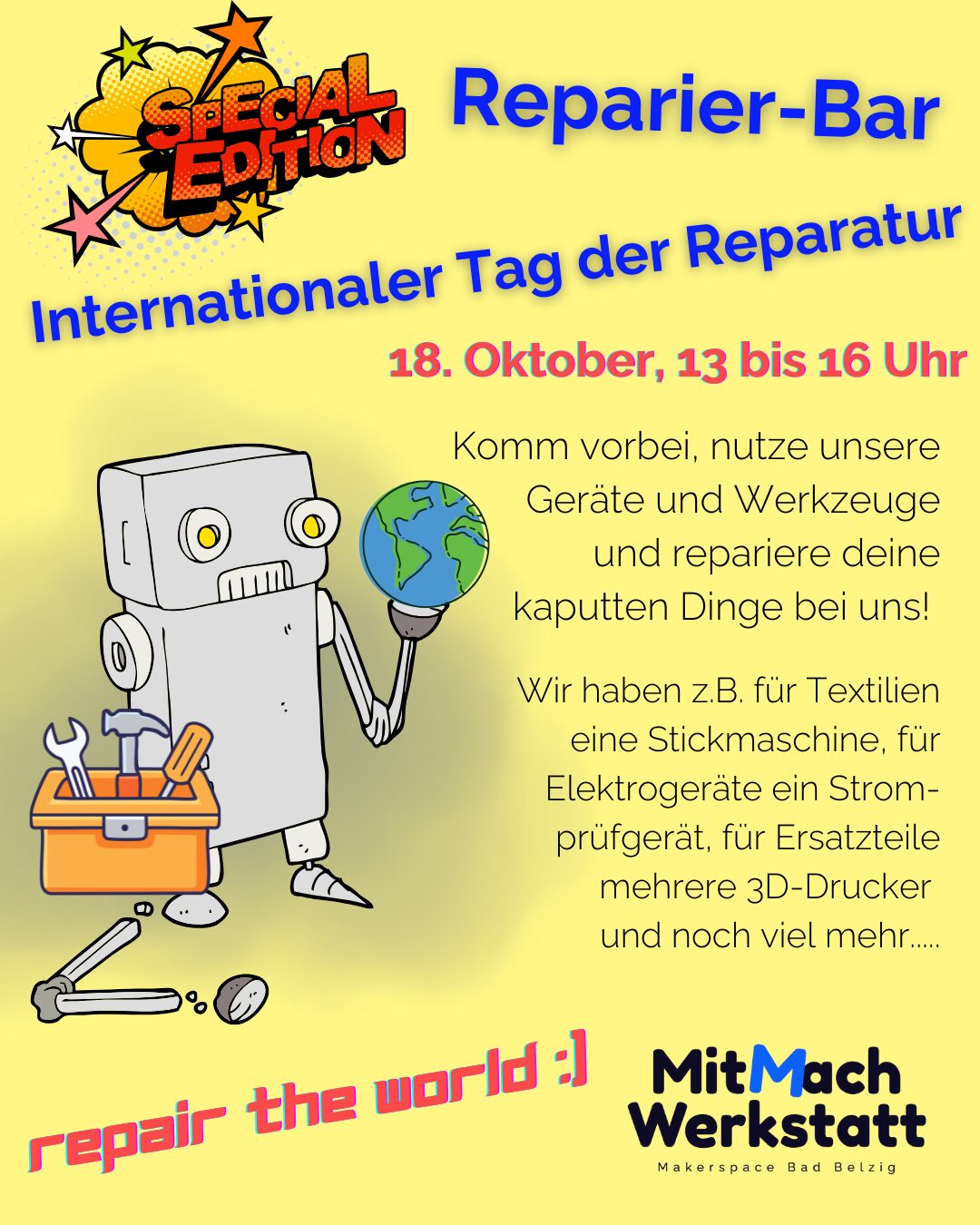 0 Veranstaltungen, | 1 Veranstaltung, ![]() Hervorgehoben - ![]() Hervorgehoben Wir programmieren, drucken in 3D, benutzen den Lasercutter oder andere Geräte in unserer Werkstatt. Dienstags erwarten wir euch mit einem spannenden Workshop! | 0 Veranstaltungen, | 2 Veranstaltungen, ![]() Hervorgehoben - ![]() Hervorgehoben Der Makerspace im Gewerbehof öffnet jeden Donnerstag, von 12:00 bis 20:00, für euch seine Pforten. Kommt gerne mit euren Projekten und Ideen vorbei und wir unterstützen euch dabei mit unserem Know-how und den Möglichkeiten einer modernen Werkstatt. ![]() Hervorgehoben - ![]() Hervorgehoben Wie lässt sich die Mitmach-Werkstatt noch besser in Schulen und Jugendeinrichtungen integrieren? Welche Projektideen gibt es – und wie können wir sie gemeinsam umsetzen? | 0 Veranstaltungen, | 1 Veranstaltung, ![]() Hervorgehoben - ![]() Hervorgehoben Am Samstag, den 18. Oktober, öffnet die Mitmach-Werkstatt Bad Belzig von 13 bis 16 Uhr ihre Türen zur Reparier-Bar – passend zum Internationalen Tag der Reparatur. | 0 Veranstaltungen, |