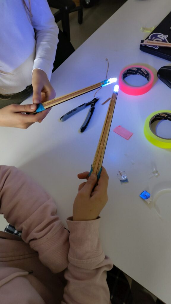 Aber was kann man damit machen? Zum Beispiel bunt leuchtende LED-Schilder gestalten, eigene Computerspiele programmieren, eine eigene Minigolfanlage aus Pappe bauen, ferngesteuerte Fahrzeuge selbst konstruieren oder Zauberstäbe zum Leuchten bringen.
